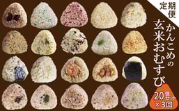 おむすび [全3回 定期便]かんこめの玄むす 玄米おむすび20個セット×3回 愛媛県西条市 | 玄米 玄米おむすび おにぎり 人気 おむすび 個包装 便利 簡単調理 ヘルシー 健康 朝ごはん おやつ ダイエット