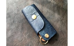 鹿革のキーケース(スピーディー振り出し式)【紺】鍵ケース 革小物 革製品 レザー ハンドメイド レザークラフト キーリング アクセサリー お洒落 金属 ギフト 25000円【R00553】
