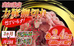 【定期便】高知県大月町産 力豚細切れ 月2回 6パック × 3カ月
