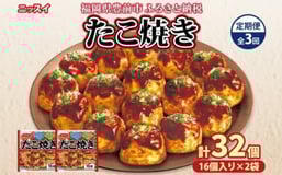 【全3回定期便】ニッスイ たこ焼き 16個入 320g×2袋 計32個 たこやき 冷凍たこ焼き 冷凍食品 軽食 おやつ 本格的 手軽 備蓄 常備 ストック 簡単調理 お取り寄せ 送料無料 福岡県 《豊前》 【日本ふるさと創生】 [VEM006]
