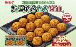 【全2回定期便】 ニッスイ たこ焼き ねぎ醤油味 16個入 320g×2袋 計32個 たこやき 冷凍たこ焼き 冷凍食品 軽食 おやつ 本格的 手軽 備蓄 常備 ストック 簡単調理 お取り寄せ 福岡県 《豊前》【日本ふるさと創生】 [VEM008]