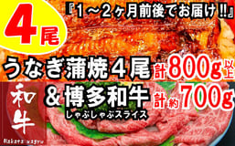 BD014.うなぎの蒲焼4尾&博多和牛700g【スタミナ満点!元気セット】