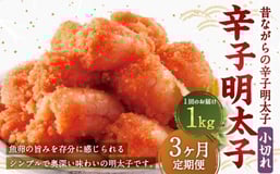 【3ヶ月定期便】 辛子明太子 「昔ながらの明太子」 500g×2個セット(小切れタイプ)×3回 計3kg からしめんたいこ 明太子 めんたいこ すけとうだら 魚卵 小分け 冷凍