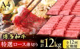 【12回定期便】博多和牛 特選ロース 薄切り 1kg 牛肉 にく ステーキ お歳暮 お中元 贈答用 サーロイン 赤身 父の日 母の日 敬老の日 にく ろーす 広川町 / 久田精肉店株式会社 [AFBV055]