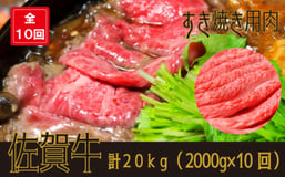 【定期便】佐賀牛すき焼き用 20kg(2kg×10回)