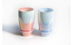 【セット】有田焼 ビアグラスオーロラ ブルー・ピンク ペア 賞美堂本店
