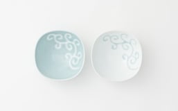 【青山窯】伊万里焼/かけわけ波小鉢白と青の2客セット