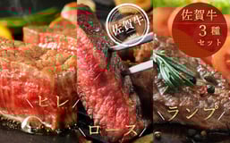 【定期便セット】佐賀牛ステーキ3種セット(ひれ・ロース・ランプ:3回)