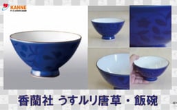 【有田焼/香蘭社】うすルリ唐草 お茶碗(飯碗)