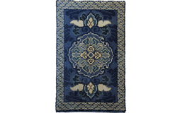 鍋島緞通【手織り】蟹牡丹文 花あさぎ