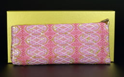 井手美弥子 佐賀錦 中紅花丸に幾何学模様(ペンケース)