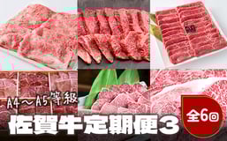 【定期便セット】佐賀牛定期便3・佐賀牛リブローススライス500g・ミニヒレ300g・ももスライス400g・佐賀牛6種盛600g・佐賀牛焼肉セット500g・佐賀牛サーロイン200gと佐賀牛リブロース200g