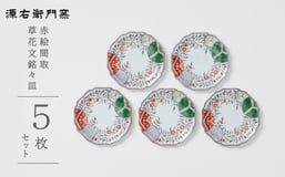 【源右衛門窯】有田焼/赤絵間取草花文 銘々皿5枚