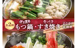 定期便 もつ鍋 & 牛バラ肉すき焼き よくばり2回便 999-J219