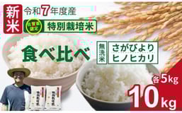 【先行予約】令和7年度産 佐賀県認定 特別栽培米 無洗米 食べ比べ さがびより・ヒノヒカリ 合計10kg(5㎏×各1袋)しもむら農園 農薬半分以下 一等米 精米 白米 ブランド米 お米 白飯 人気 ランキング 高評価 お米