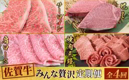 【4回定期便】 佐賀牛 みんなで贅沢 お楽しみ便(合計3.8kg) 【希少 国産和牛 牛肉 肉 ヒレ サーロイン ロース ステーキ 特選 すき焼き 赤身】(H085150)