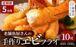 【5カ月定期便】創業45年「魚屋さんの手づくりエビフライ」10尾(400~500g)【海老フライ 夕食 おかず プリプリ 簡単 時短料理 揚げるだけ ふるさと納税】(H032124)