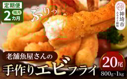 【隔月定期便2回】創業45年「魚屋さんの手づくりエビフライ」20尾(800~1000g)【海老フライ 夕食 おかず プリプリ 簡単 時短料理 揚げるだけ ふるさと納税】(H032136)