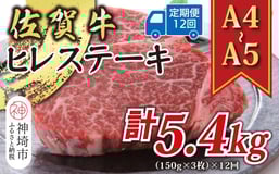 【12か月定期便】【A4~A5】佐賀牛ヒレステーキ 450g(150g×3枚)×12回【肉 牛肉 ブランド牛 黒毛和牛 ステーキ肉 ふるさと納税】(H112213)