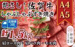 【3か月定期便】艶さし!【A4~A5】佐賀牛しゃぶしゃぶすき焼き用(肩ロース肉・肩バラ・モモ肉) 500g×3回【肉 牛肉 ブランド牛 黒毛和牛 ふるさと納税】(H112151)