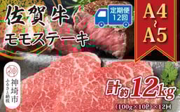 【12か月定期便】【A4~A5】佐賀牛モモステーキ 約1kg(100g×10P)×12回【肉 牛肉 ブランド牛 黒毛和牛 ステーキ肉 ふるさと納税】(H112249)