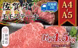 【3か月定期便】【A4~A5】佐賀牛モモステーキ 約1.5kg(100g×15P)×3回【肉 牛肉 ブランド牛 黒毛和牛 ステーキ肉 ふるさと納税】(H112250)