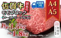 【3か月定期便】訳あり!【A4~A5】佐賀牛モモブロック(ローストビーフ用等) 約500g~600g×3回【肉 牛肉 ブランド牛 黒毛和牛 ふるさと納税】(H112223)