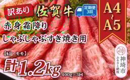 【3か月定期便】訳あり!【A4~A5】佐賀牛赤身霜降りしゃぶしゃぶすき焼き用(肩・モモ) 400g×3回【肉 牛肉 ブランド牛 黒毛和牛 ふるさと納税】(H112226)