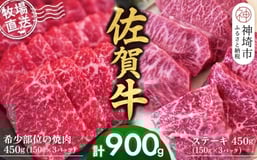 佐賀牛 希少部位焼肉用150g×3パック計450g ステーキ150g×3パック計450g【佐賀牛 焼肉 スライス ひとくち ステーキ 牧場直送 赤身肉 食べ比べ 小分け】(H122122)