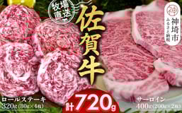 佐賀牛 サーロインステーキ200g×2枚計400g ロールステーキ80g×4枚計320g【サーロイン ステーキ 佐賀牛 ブランド 和牛 高級部位】(H122131)