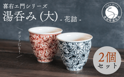 喜鶴製陶【有田焼】湯呑み(大)花詰 ペアセット 喜右エ門シリーズ 和食器 食器 うつわ 器 2個セット 手描き 染付 赤 ネイビー 花 コップ カップ 小鉢 モダン おしゃれ ギフト 贈答 かわいい 35000円 3.5万円 A35-541