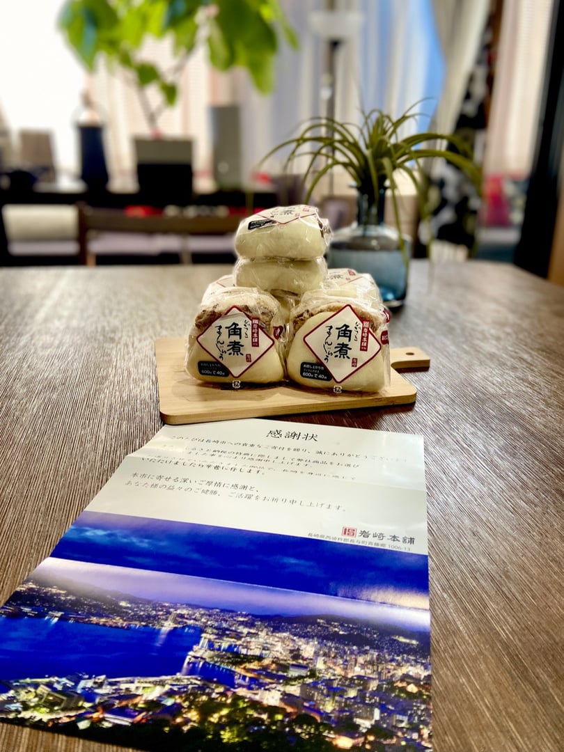 旅行で長崎に訪れた際も食べたことのある岩崎本舗さんの角煮まんじゅうを美味しくいただきました。