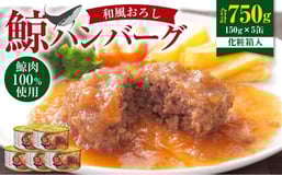 【7営業日以内発送】 化粧箱入 鯨ハンバーグ (和風おろしソース) 150g×5缶 (計750g) セット / ハンバーグ 鯨 くじら クジラ 鯨肉 和風おろし 超特選むらさき 保存食 九州 長崎県 長崎市 常温