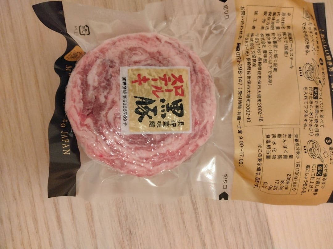 箸で切れるくらい柔らかく、赤身と脂身が程よいロールステーキでした。解凍時にドリップをしっかり取ってから焼いた方が良いと思いました。
