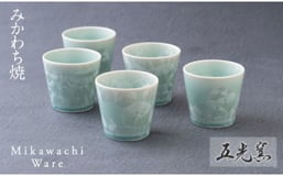 G106p 〈平戸藤祥五光窯〉結晶釉ロックカップ5客セット(緑)