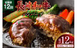 AJ588 【12回定期便】長崎和牛 ハンバーグ 約1kg (200g×5個) [ 肉 牛肉 和牛 おいしい ひき肉 焼くだけ おかず まるしん商会 黒牛 長崎県 島原市 ]