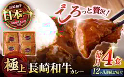 【12回定期便】 【肉のプロが贈る 究極のカレー】長崎和牛 A5 カレー 約275g×4袋 / カレーライス かれー レトルト 牛 和牛 / 諫早市 / 野中精肉店 [AHCW100]
