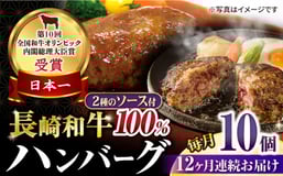 【12回定期便】シュシュの長崎和牛ハンバーグ 10個/月(計120個)/ 牛肉 長崎和牛 ハンバーグ はんばーぐ 惣菜 おかず 小分け / 大村市 / おおむら夢ファームシュシュ [ACAA273]