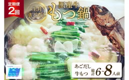 もつ鍋 あごだし セット 3〜4人前 2回 定期便 総計 6〜8人前 [Vive la vie! 長崎県 平戸市 hr42bgy420514] もつ 鍋 あご出汁 アゴ 飛び魚 トビウオ 簡単調理 冷凍 あごだしもつ鍋 鍋セット 牛もつ ホルモン 国産牛 生月