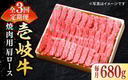 【全3回定期便】 特選 壱岐牛 肩ロース 680g(焼肉用)《壱岐市》【太陽商事】[JDL073] お肉 牛肉 和牛 黒毛和牛 高級 霜降り 焼肉 ロース肉 BBQ ローストビーフ 国産 贈答 123000 123000円