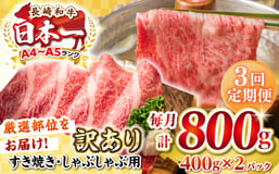 【全3回定期便】【訳あり】【A4~A5ランク】長崎和牛 しゃぶしゃぶ・すき焼き用 800g(400g×2パック)(肩ロース肉・バラ肉・モモ肉)《壱岐市》【株式会社MEAT PLUS】 肉 牛肉 訳あり しゃぶしゃぶ用 すき焼用 A5 [JGH060]