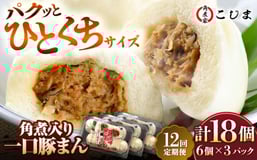 【12回定期便】角煮入り一口豚まん6個入×3セット 五島市/角煮家こじま [PGX048] 肉まん 豚まん にくまん ぶたまん 饅頭 おやつ 惣菜 手軽 簡単調理 長崎県 五島市