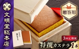 【3回定期便】特撰カステラ580g【木箱】/文明堂総本店 [EAK002] カステラ 長崎カステラ かすてら 長崎 人気 和菓子 お中元 お歳暮 ざらめ ザラメ 焼菓子