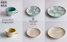 【波佐見焼】フロールブランシュ(ミント・イエロー)マグカップ・15cm プレート・22cm プレート セット 食器 皿 【西山】【NISHIYAMAJAPAN】 [CB45]