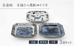 【波佐見焼】古染紋 手描き八角取皿トリオ【西海陶器】 [OA322]