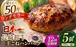 【全12回定期便】肉汁溢れる!贅沢・長崎和牛 手ごねハンバーグ 5個入り【野中精肉店】 ハンバーグ 冷凍 小分け こだわり 人気 和牛 簡単 ハンバーグ [VF89]