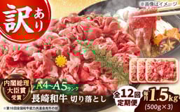 【全12回定期便】【訳あり】【A4~A5】長崎和牛切り落とし 1.5kg(500g×3p)【株式会社 MEAT PLUS】 [DBS064]長崎和牛 和牛 国産 牛肉 長崎和牛 切り落とし 1.5kg 500g 3パック12回定期便 定期便 12回 訳あり 訳アリ