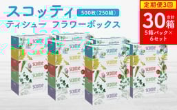 【定期便3回】【毎月お届け】【スコッティ】ティシュー フラワーボックス 250組 5箱パック×6セット 合計30箱 ティッシュ 日用品 生活必需品 ストック 新生活 防災 生活用品 日用消耗品 箱ティッシュ