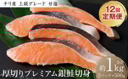 【定期便12回】厚切り プレミアム銀鮭切身 1kg(500g×2パック)ギンザケ お弁当 おかず レシピ 焼き魚 ムニエル 冷凍 サケ さけ シャケ 切り身 魚 魚介 甘塩