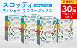 【定期便6回】【毎月お届け】【スコッティ】ティシュー フラワーボックス 250組 5箱パック×6セット 合計30箱 ティッシュ 日用品 生活必需品 消耗品 紙 まとめ買い 備蓄 防災備蓄 ストック デザインボックス 新生活 防災 生活用品 日用消耗品 箱ティッシュ